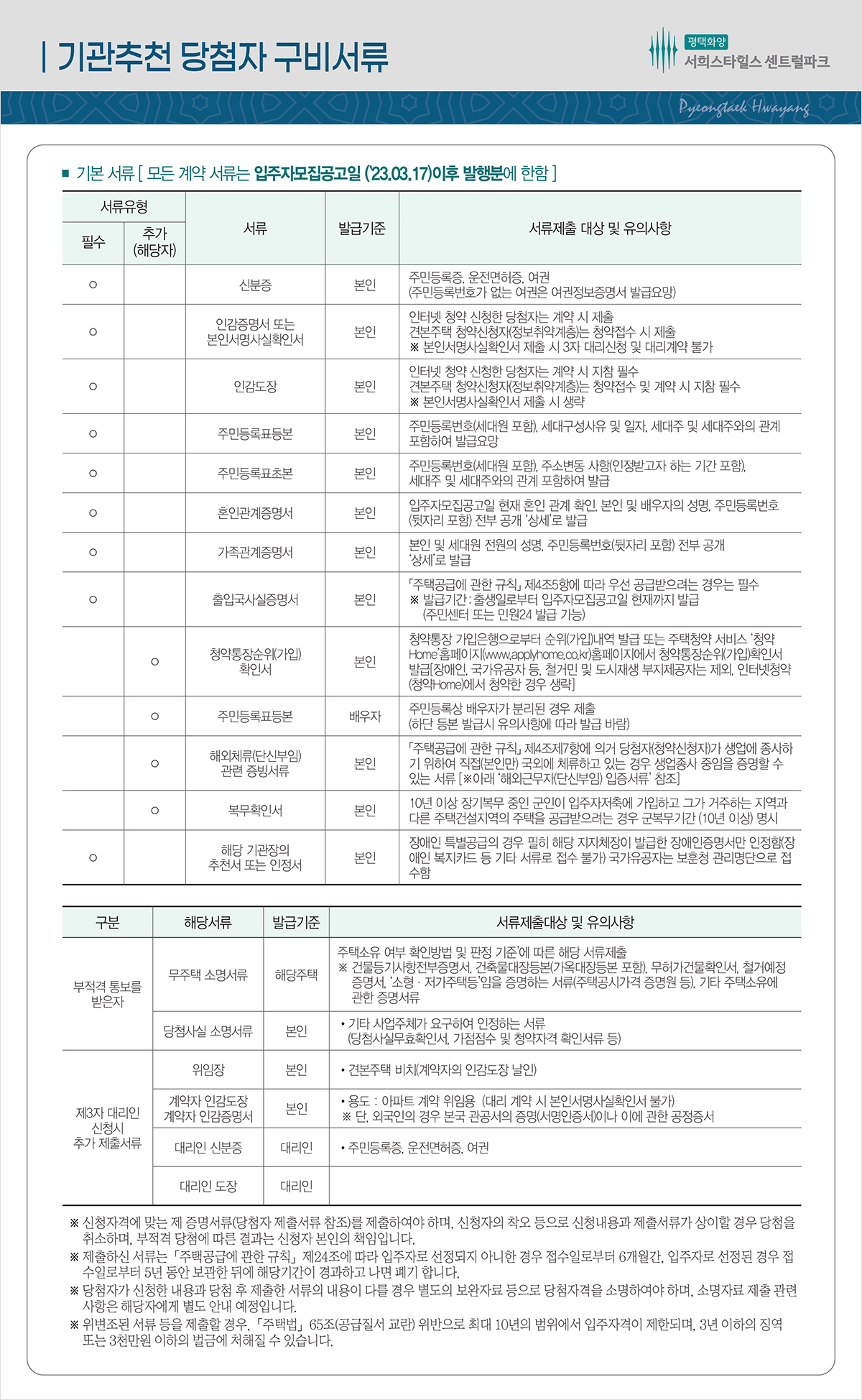 특별공급 서류안내